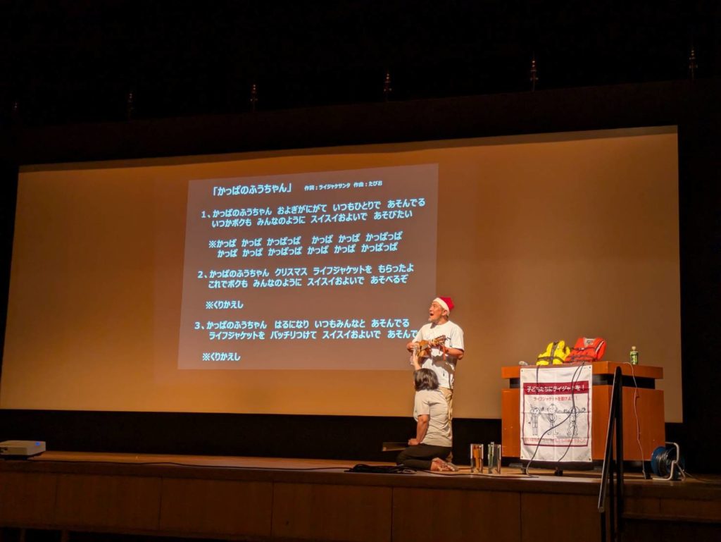 ・今日の研修会を聞いて、子どもたちを指導する教員として、子どもたちの命を守るためにも、ライフジャケットの大切さを改めて認識することができました。自分自身、振り返ってみると海や川に子どもの頃、遊びにいったときにライフジャケットを着ずに遊んでいたと思うので、今考えるとゾッとします。今日の講演で、「かっぱのふうちゃん」の絵本をクラスの子どもたちにも読み聞かせをして、ライフジャケットの大切さを教えて、子どもたちが海や川に遊びに行くときに、着用してもらえるように伝えていきたいと思いました。